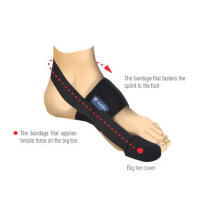 Νάρθηκας Hallux Valgus(Κότσι) που αναπτύχθηκε για την ανάσχεση της εξέλιξης της παραμόρφωσης του Βλαίσου μέγα δακτύλου (Hallux Valgus). Αποτελείται από ένα προστατευτικό κάλυμμα για το μεγάλο δάχτυλο του ποδιού και ελαστικούς επιδέσμους. Αποτρέπει την πλευρική απόκλιση του μεγάλου δακτύλου του ποδιού εφαρμόζοντας δύναμη έλξης. Τα ελαστικά και μαλακά υλικά ελαχιστοποιούν το αίσθημα δυσφορίας και παρέχουν μέγιστη άνεση. Είναι βολικό να χρησιμοποιείται καθημερινά με τα παπούτσια.
